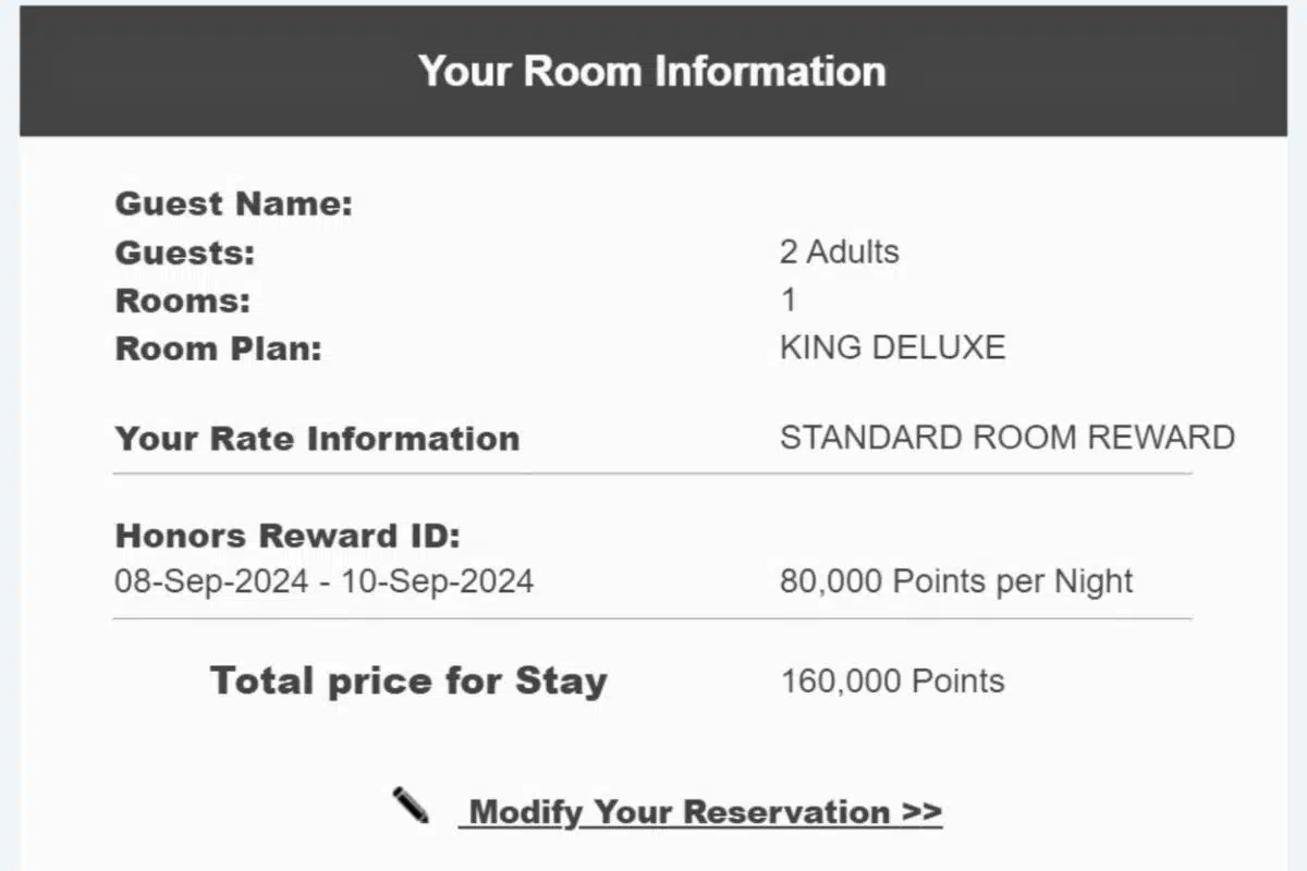 Wir haben ein King Deluxe Standard Room Reward für 80.000 Punkte pro Nacht gebucht. Ich schrieb dem Hotel ein paar Tage vorher eine E-Mail und teilte ihnen mit, wie sehr wir uns darauf freuten, unseren 10-jährigen Hochzeitstag hier zu feiern. Ich fragte nach Möglichkeiten, unsere Reise zu etwas Besonderem zu machen und erwähnte, dass wir hofften, einen fantastischen Ausblick zu haben.